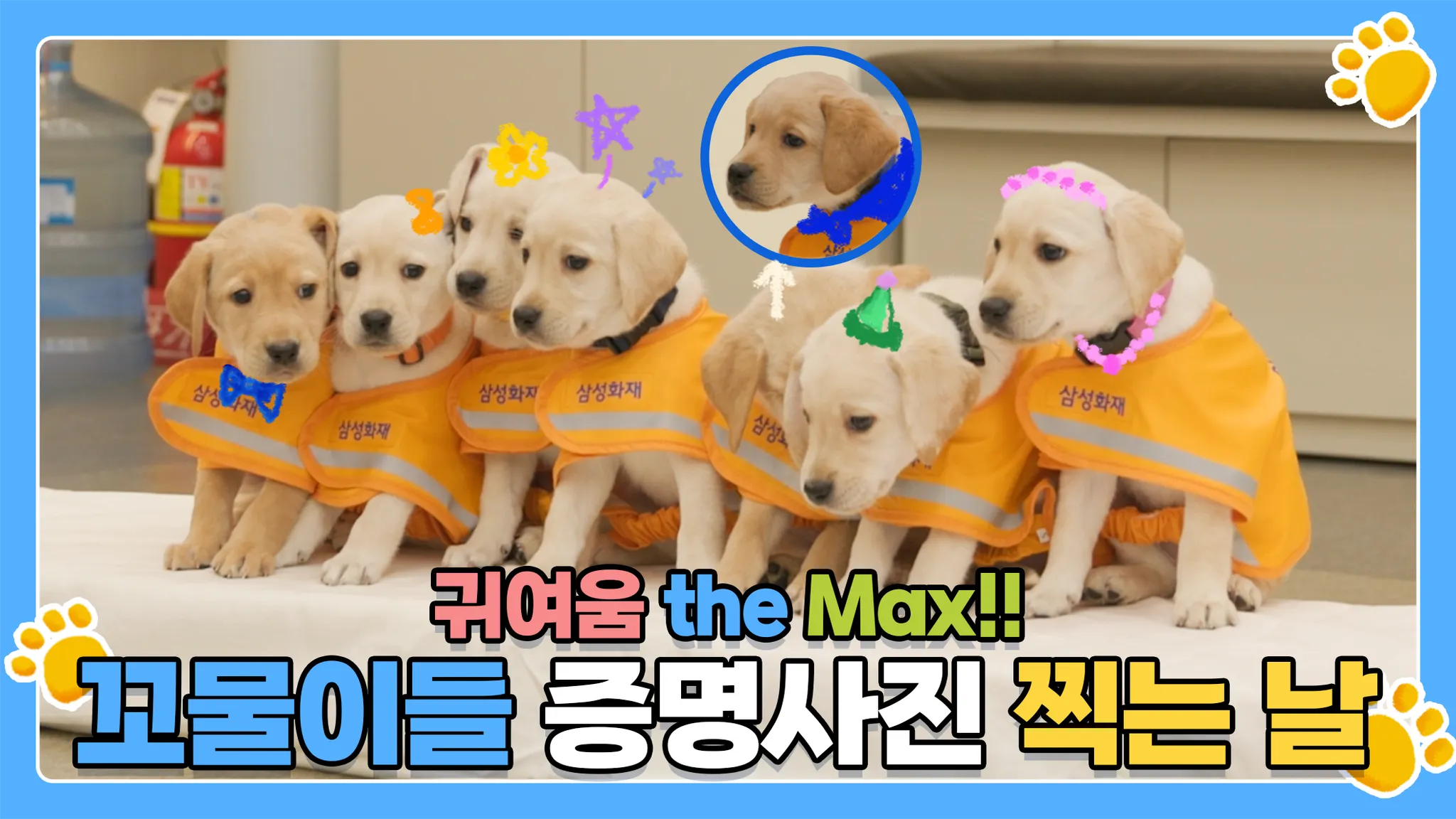 삼성화재 안내견학교 예비 안내견 7마리가 보건복지부 장애인 보조견 등록을 위해 증명사진을 찍고 왔어요. 본격 광대승천하는 예비 안내견들의 모습을 삼성화재 유튜브에서 만나보세요!