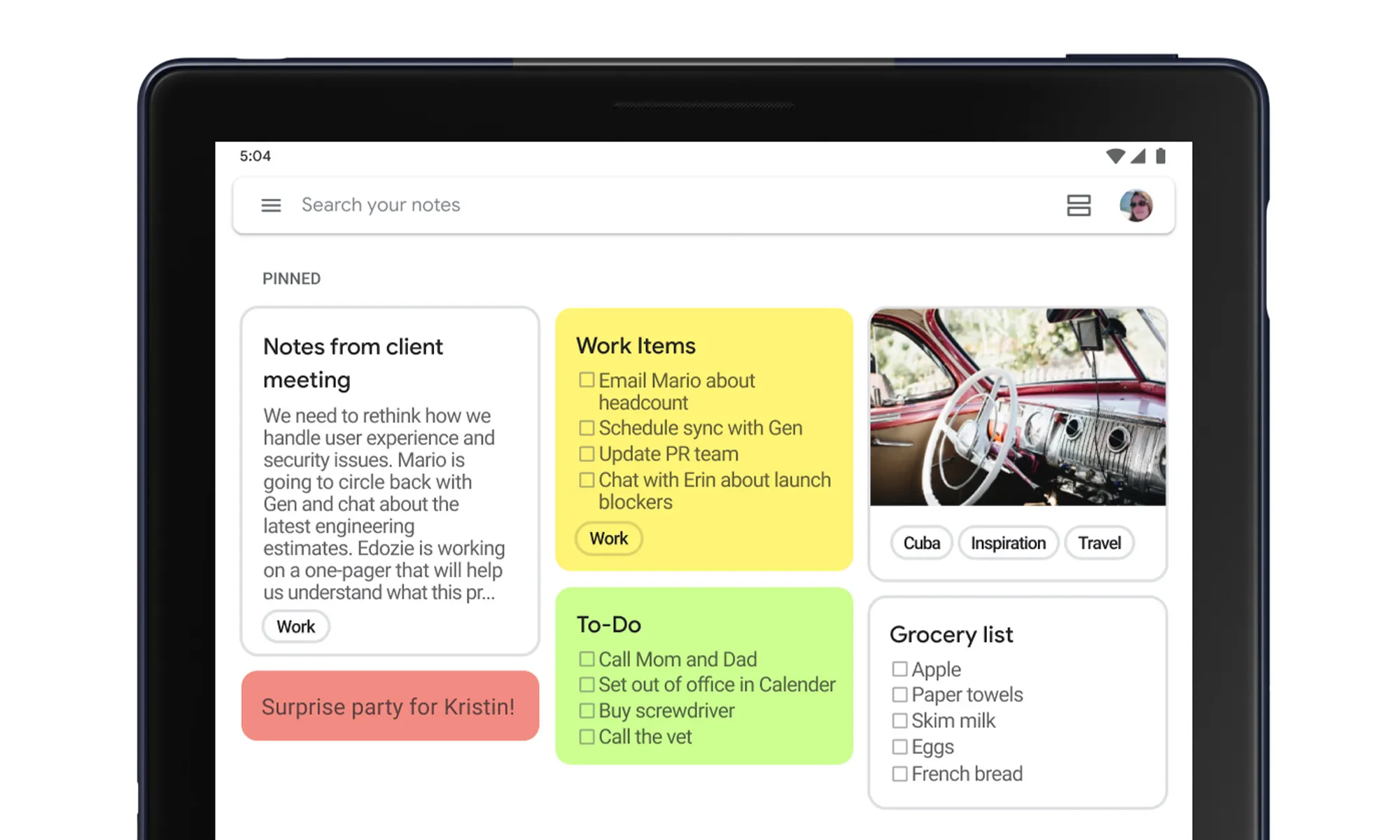 | 전체 메모가 한눈에 보이는 타일형 배치