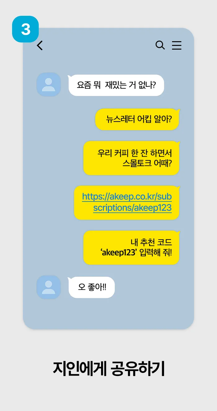 뉴스레터 어킵을 지인 2명에게 추천해 보세요. 이벤트 기간 안에 2명이 모두 구독하면 커피 쿠폰을 드려요!