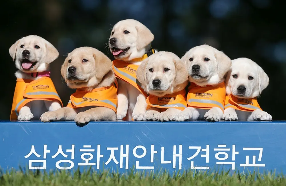 삼성화재 안내견학교의 예비 안내견들 (출처 : 삼성 뉴스룸)