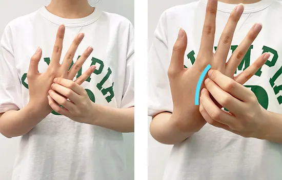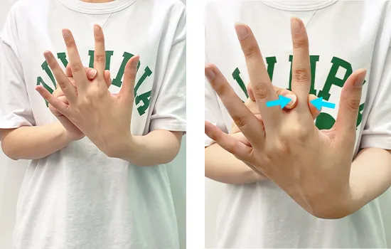 손가락 안쪽 마디를 반대쪽 손가락으로 잡은 상태에서 지그시 눌러줍니다.