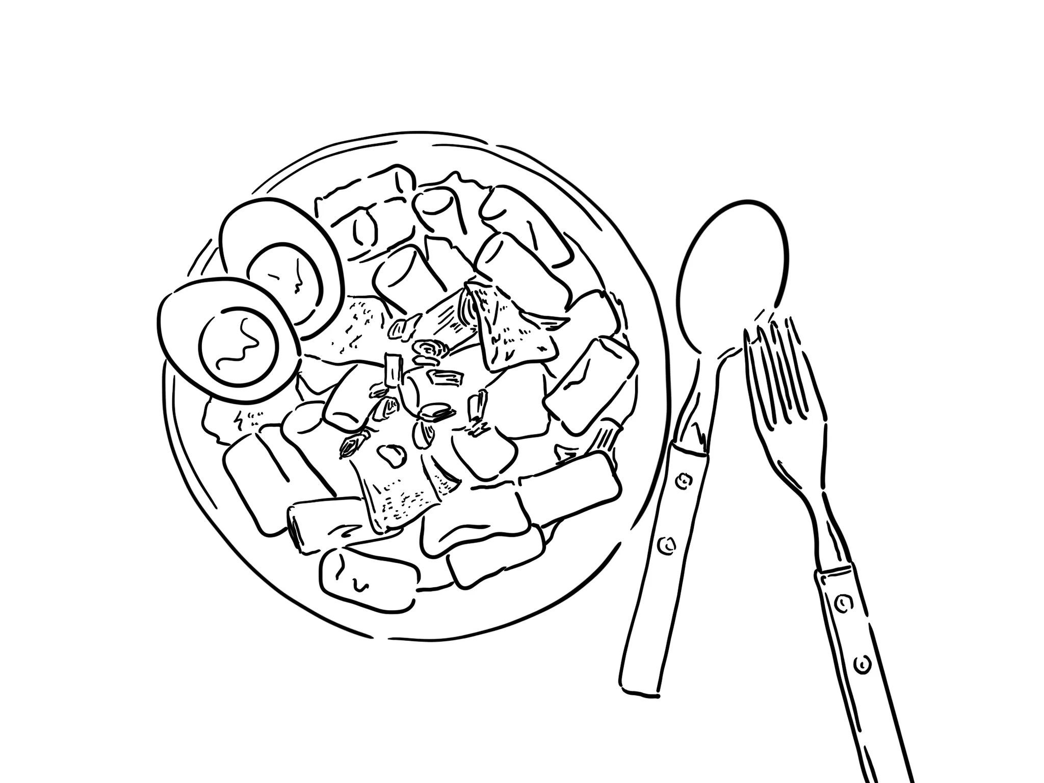 떡볶이의 영원한 단짝, 튀김과 라면 사리. 하지만 떡볶이는 고열량 영양 불균형 음식이에요. 여기에 고열량, 트랜스 지방이 다량 함유된 튀긴 음식을 곁들인다면 우리 몸엔 두 배로 해가 될 수 있어요. 튀김 대신 삶은 계란 한 알을 곁들이는 건 어떨까요? 삶은 계란 한 알이면 단백질 충전은 물론이고 고소한 노른자가 떡볶이의 매운맛까지 중화시켜줄 거예요.
