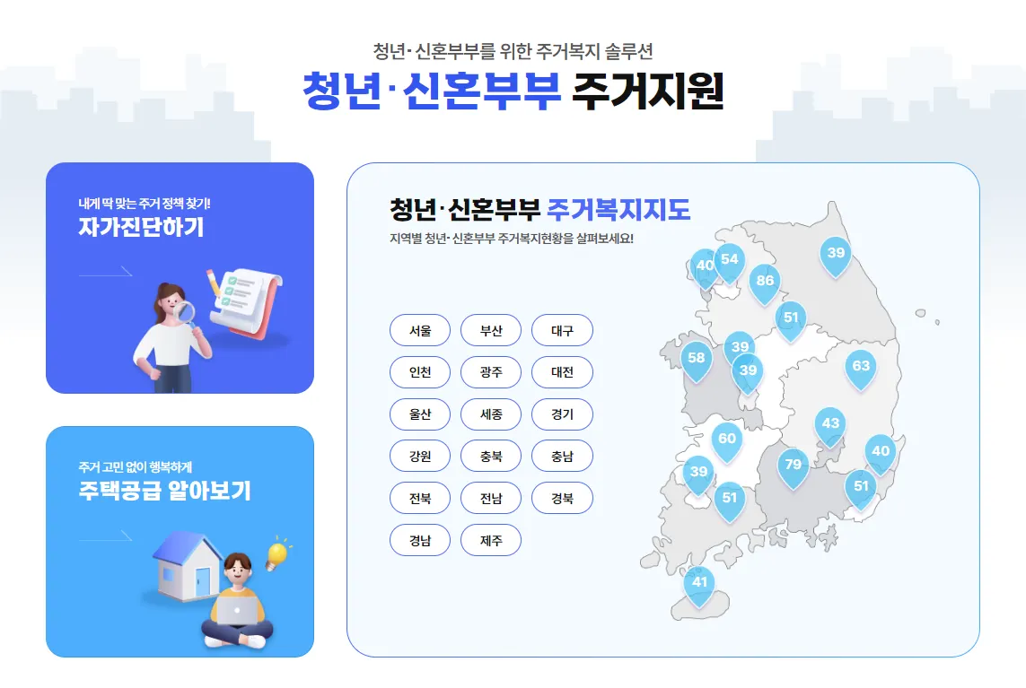 신혼부부 : 입주자모집공고일 현재 청약통장에 가입해 유지하고 있는 무주택 신혼부부를 대상으로 합니다. 혼인 기간이 7년 이내인 부부들이 지원할 수 있으며 혼인신고일로부터 지금까지 무주택자여야 합니다.